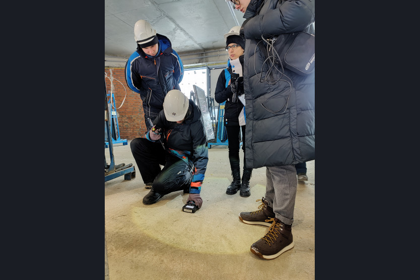 Специалисты отдела технического контроля провели инструментальное обследование монолитных железобетонных колонн, стен и перекрытий во всех блоках здания на предмет соответствия ГОСТам. Обследование проводилось с помощью лазерного дальномера, измерительной рулетки, измерителей защитного слоя бетона и метеорологических параметров, штангенциркуля с глубиномером, измерителя времени и скорости распространения ультразвука и датчиков поверхностного прозвучивания.